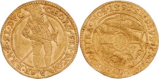 Dukát 1596, stojící markrabě, opis / znak, opis, Sa.68 (obr.18), Fr.3112 (2777), Kop.5899, 3.478g, zvlněný, patina RRR!