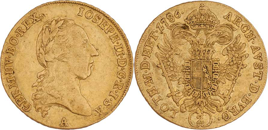 2 Dukát 1786 A, Vídeň, P.17, KM.2088, 6.955g, dr.hr., dr.rysky, vlas.škr., pěkná patina