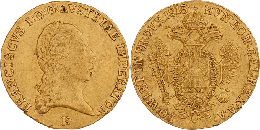Dukát 1813 E, Karlovský Bělehrad, 3.476g, dr.hr., nep.rysky, pěkná patina R!