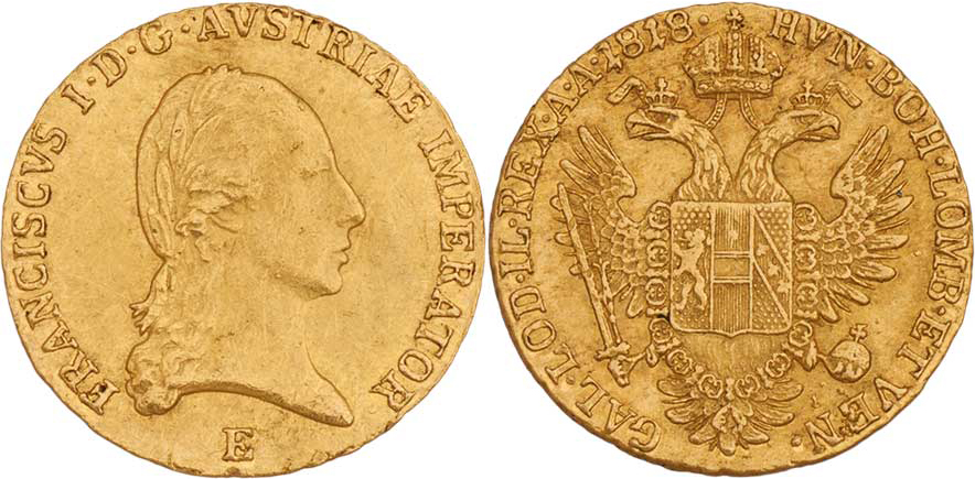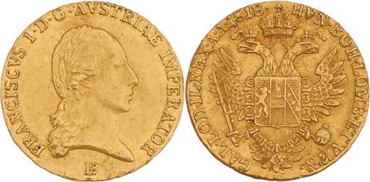 Dukát 1818 E, Karlovský Bělehrad, 3.475g, nep.hr., vl.rysky, pěkná patina R!