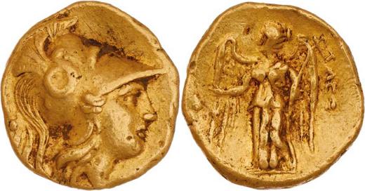 Statér, Hlava Atény v korintské přilbě zprava / Niké kráčející vlevo, nápis, SG.6702, 8.570g, exc., nedor., patina