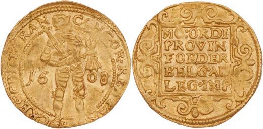 Dukát 1608 - Utrecht, KM.7, Fr.284 (98), 3.467g, dr.vady razidla, mírně zvlněný, pěkná patina