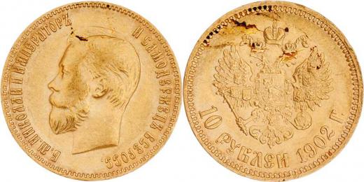 10 Rubl 1902 AR, Y.64 (Au900), 8.587g, hr., dr.rysky, skvrnky, patina