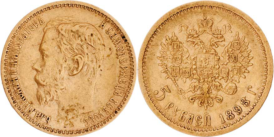 5 Rubl 1898 AG, Y.62 (Au900), 4.282g, nep.hr., nep.rysky, skvrny, patina