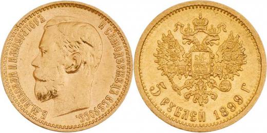 5 Rubl 1899 FZ, Y.62 (Au900), 4.271g, nep.hr., nep.rysky