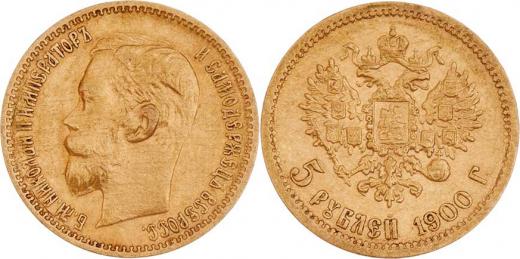 5 Rubl 1900 FZ, Y.62 (Au900), 4.274g, nep.hr., nep.rysky, pěkná patina