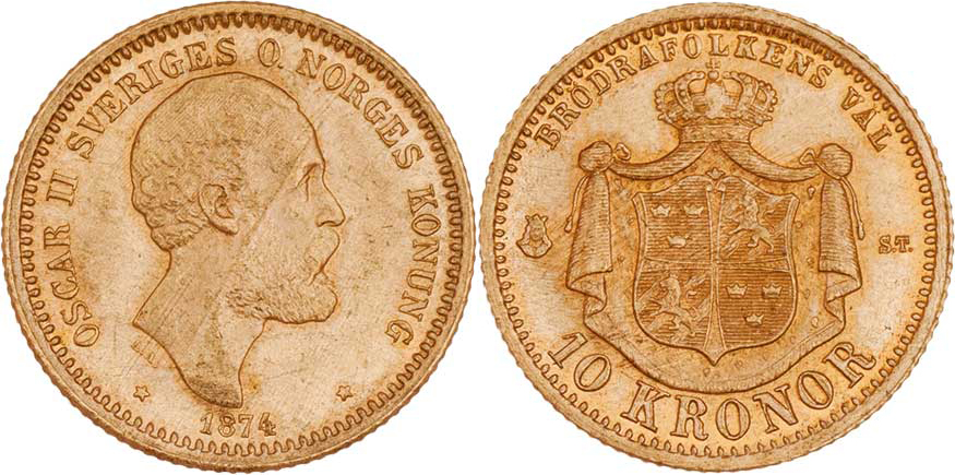 10 Koruna 1874 ST, KM.732 (Au900), 4.480g, nep.hr., nep.rysky, pěkná patina, téměř