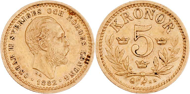 5 Koruna 1882 EB, KM.756 (Au900, pouze 30.000 ks), 2.229g, nep.hr., nep.rysky, pěkná patina, téměř