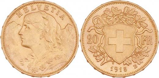 20 Frank 1915 B, KM.35.1 (Au900), 6.457g, nep.hr.