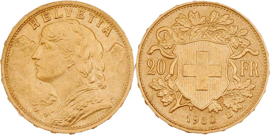 20 Frank 1930 B, KM.35.1 (Au900), 6.414g, dr.hr., patina, téměř