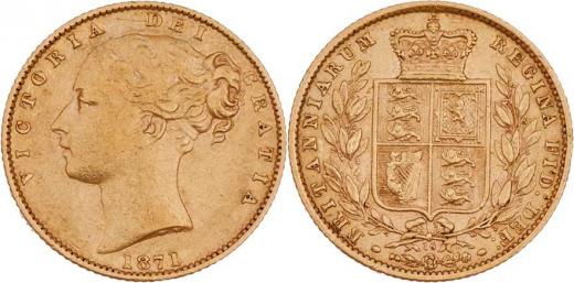 Libra 1871 - razidlo reversu s číslem "16", KM.736.2, SCBC.3853B (Au917), 7.931g, nep.hr., nep.rysky, pěkná patina