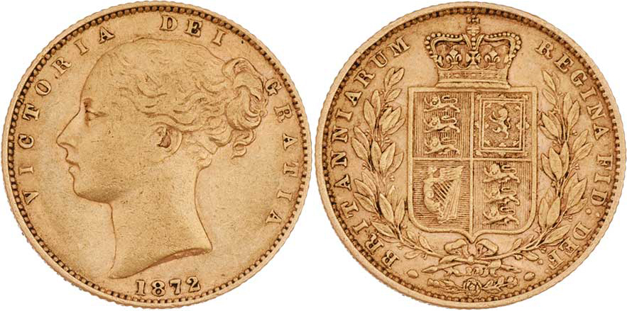 Libra 1872 - razidlo reversu s číslem "22", KM.736.2, SCBC.3853B (Au917), 7.934g, nep.hr., nep.rysky, pěkná patina