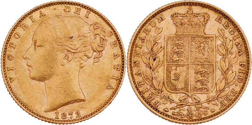 Libra 1872 - razidlo reversu s číslem "51", KM.736.2, SCBC.3853B (Au917), 7.968g, nep.hr., nep.rysky, pěkná patina