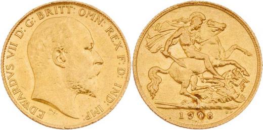 1/2 Libra 1908, KM.804 (Au917), 3.838g, hrany, rysky, úhoz