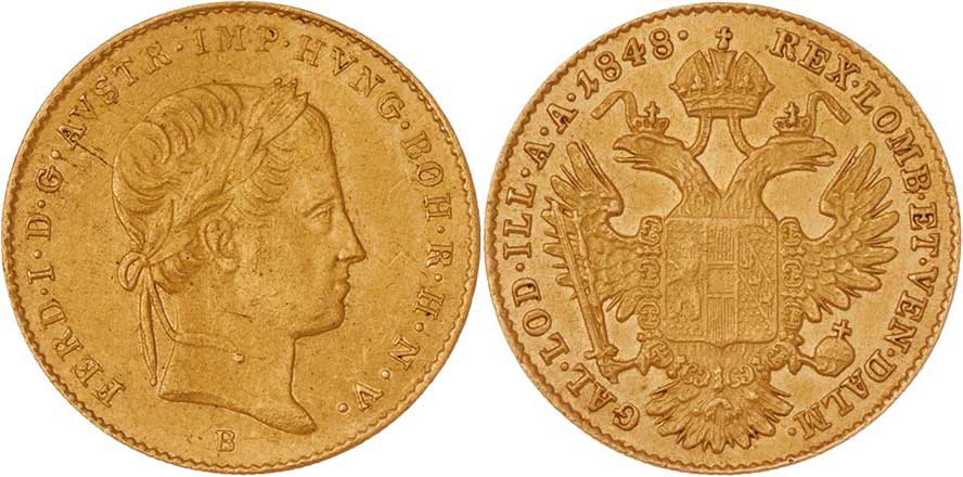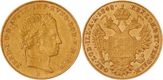 Dukát 1848 B - se znakem, Kremnica, 3.476g, nep.hr., nep.rysky, pěkná patina