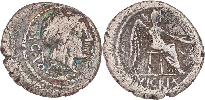 AR Quinár, Hlava Libera, nápis "M.CATO."/ sedící Victoria zprava, nápis "VICTRIX.", Crawford.343/2b, Seaby.Porcia.7, Alb.1197, exc., nedor., patina