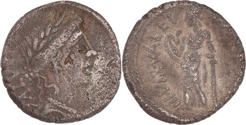 AR Denár, Hlava Salus, nápis "SALVTIS." / stojící Valetudo, "MN.ACILIVS.III.VIR.VALETVS.", Craw.442/1a, Seaby.Acilia.8, Alb.1376, vada mat., kontram., patina