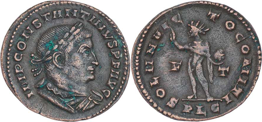 AE Follis, Rv:"SOLI.INVICTO.COMITI.", RIC.15, S.3768 - Lugdunum - dílna jediná - ražba z let 314 - 315, pěkná patina