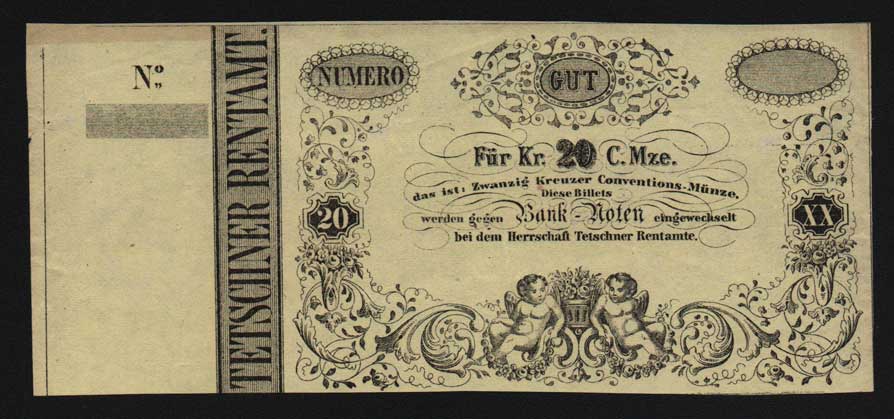 Tetschen (Děčín) - Rentamt (důchodový úřad) - 20 Krejcar b.l., V-R.1340.06.02 (formulář)