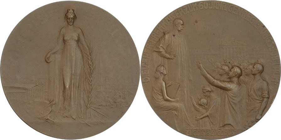 Hujer - AE medaile na hold Vídně k cís.jubileu 1908 - Obyvatelé města zdraví císaře, opis / stoj.Vindobona, významné budovy, opis, Sign., 85mm, patina