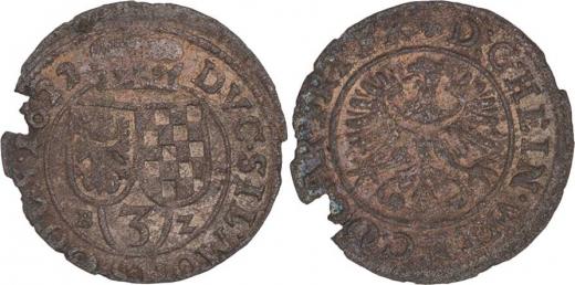 3 Krejcar 1622 BZ, Zwirner, Sa.177 (obr.48), 0.635g, olámaný okraj, pěkná patina, Chaurův podložní lístek