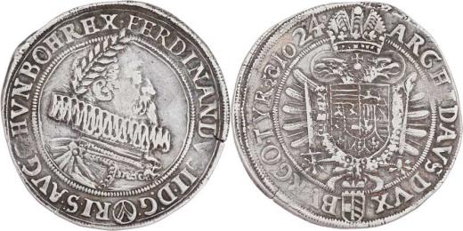 Tolar 1624, Vídeň-Fellner, M-A.118, 28.476g, dr.vady materiálu, dr.vady razidla, letopočet nedor. "1024", nep.dvojráz, patina