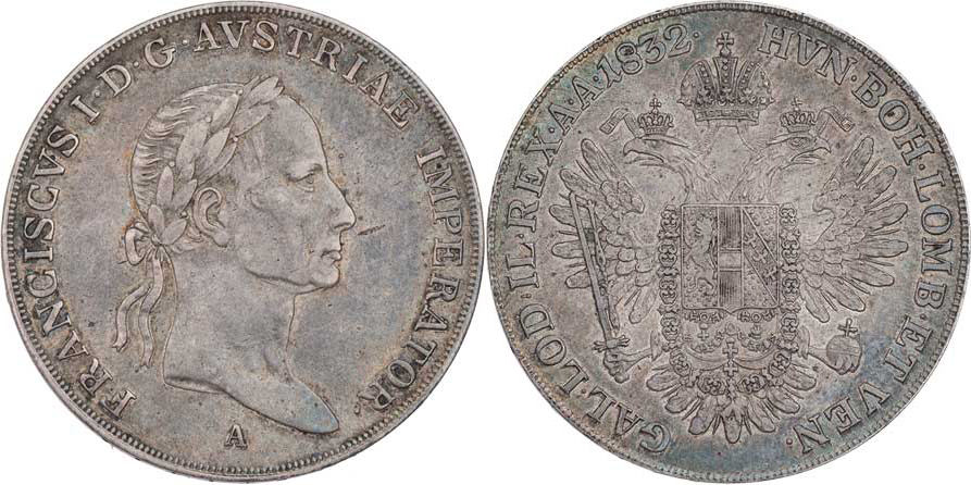 1/2 Tolar konvenční 1832 A, 13.878g, nep.hr., nep.rysky, pěkná tmavá patina R!