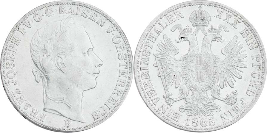 Tolar spolkový 1865 B, 18.490g, nep.hr., dr.rysky R!