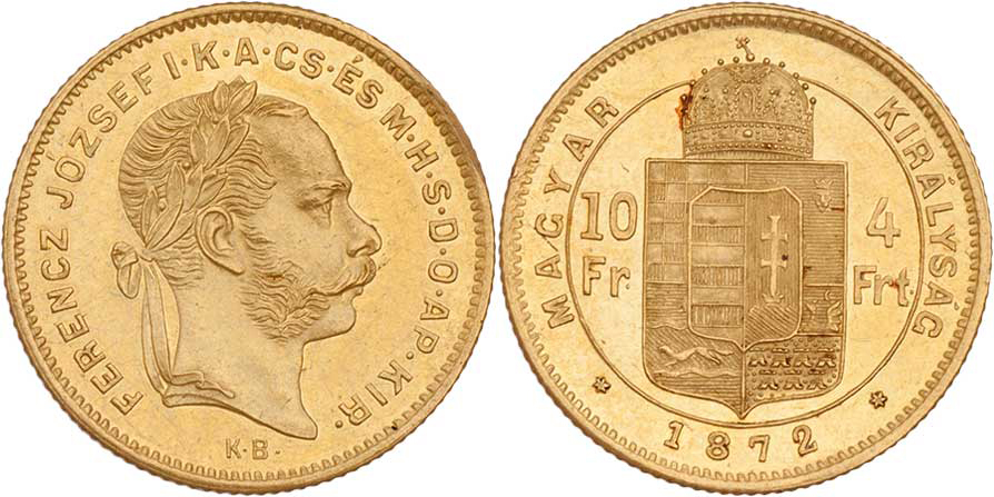 4 Zlatník 1872 KB (pouze 53.000 ks), 3.225g, nep.hr., nep.rysky R!