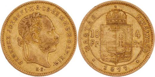 4 Zlatník 1877 KB (pouze 24.000 ks), 3.217g, nep.hr., nep.rysky, pěkná patina R!