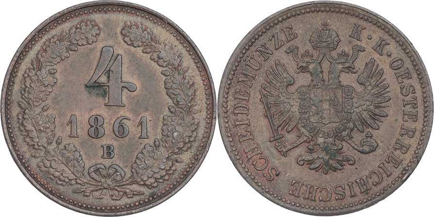 4 Krejcar 1861 B, 13.511g, dr.hr., pěkná patina R!