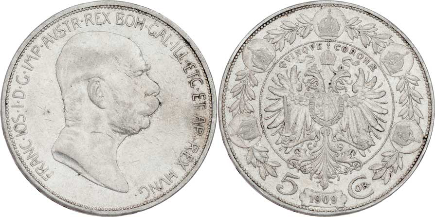 5 Koruna 1909 - Marschall, 23.912g, dr.hr., dr.rysky