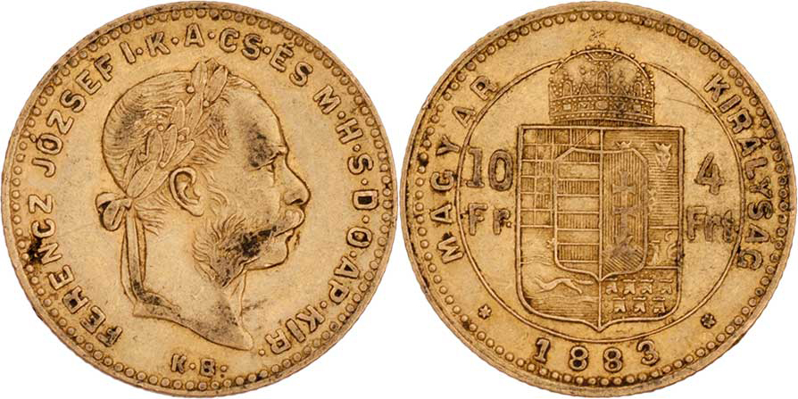 4 Zlatník 1883 KB (pouze 12.000 ks), 3.193g, nep.hr., nep.rysky, skvrnky, patina R!