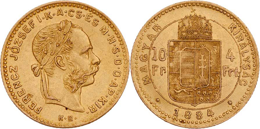 4 Zlatník 1884 KB (pouze 54.000 ks), 3.215g, nep.hr., nep.rysky, pěkná patina R!