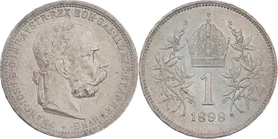 Koruna 1898, 4.971g, nep.hr., nep.rysky, pěkná patina, téměř