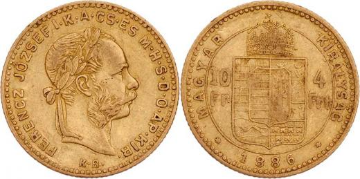 4 Zlatník 1886 KB (pouze 39.000 ks), 3.175g, nep.hr., nep.rysky, pěkná patina R!