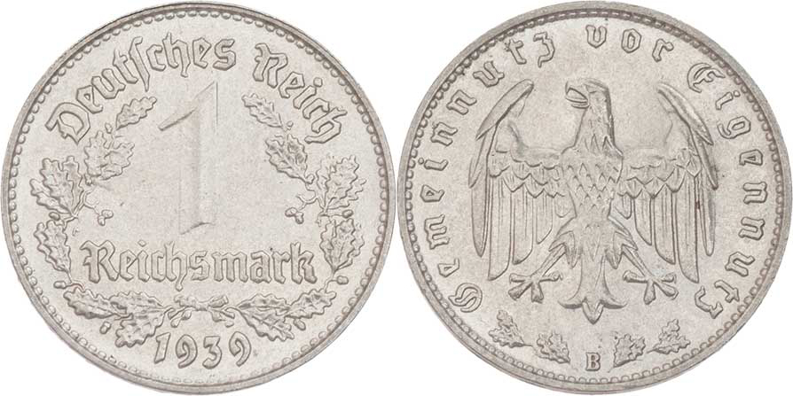 Marka 1939 B, KM.78 (Ni), 4.831g, nep.hr., nep.rysky, téměř RR!