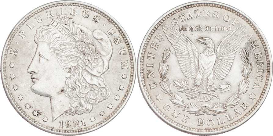 Dolar 1921 - Morgan, KM.110 (Ag900), 26.774g, nep.hr., dr.rysky, pěkná patina, téměř