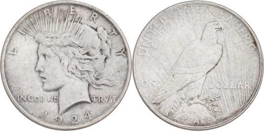 Dolar 1924 - Mírový, KM.150 (Ag900), 26.698g, dr.hr., dr.rysky, pěkná patina