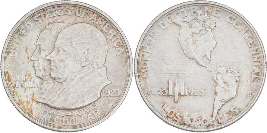 1/2 Dolar 1923 S - Monroe Doctrine, KM.153 (Ag900), 12.557g, dr.hr., nep.rysky, pěkná patina