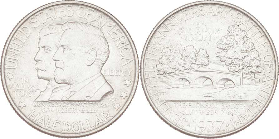 1/2 Dolar 1937 - Antietam / G.Mc.Clellan a R.E.Lee, KM.190 (pouze 18.028 ks), 12.479g, krásná patina RR!