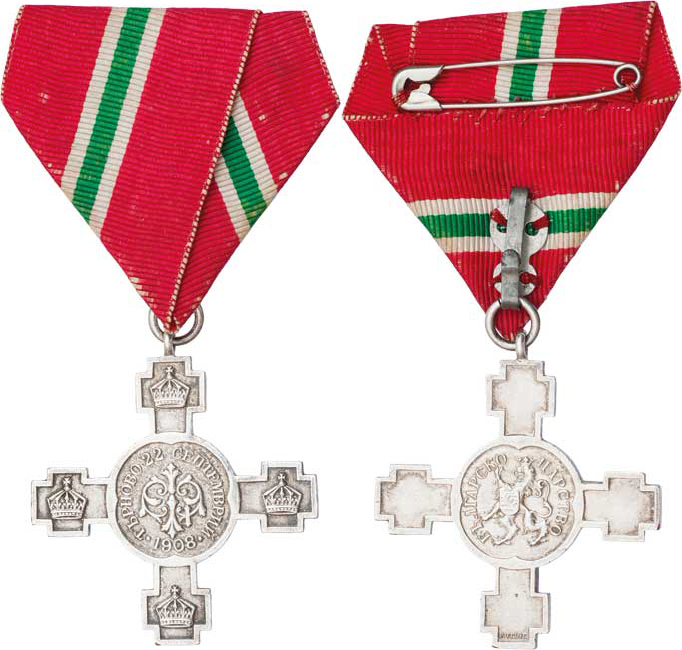 Boris III. - kříž na proklamaci 22.IX.1908, Sign. P.Telge, jako BB.90, ale postříbřený bronz