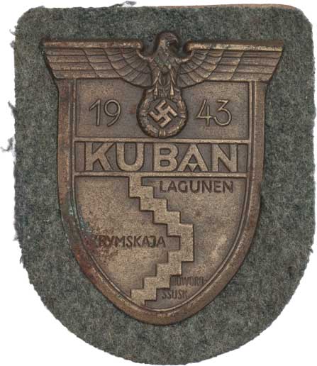 Kubáňský štít 1943, BB.102, Nimmergut.644 (3874), ND.7.05.05, bronz 52x62 mm na látkové podložce R!