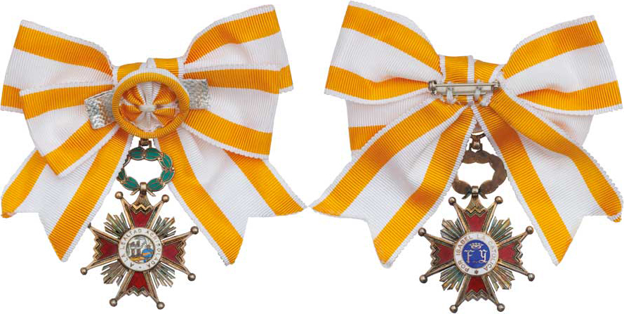 Řád Isabely Katolické - IV.třídy - komandér období 1938 - 1975, BB.768, původní dámská stuha, původní etue firmy Cejalvo, Cruz 5, Madrid