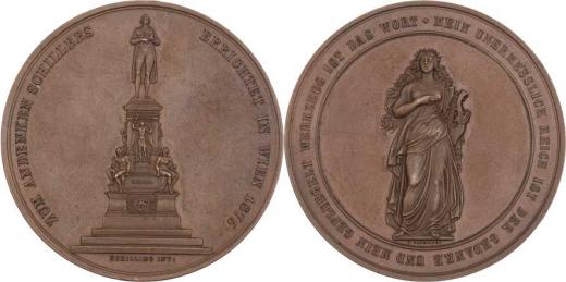Odhalení Schillerova pomníku ve Vídni 1876 - pomník a opis / múza s lyrou, opis, Sign., měď 55 mm, 65.273g, krásná patina