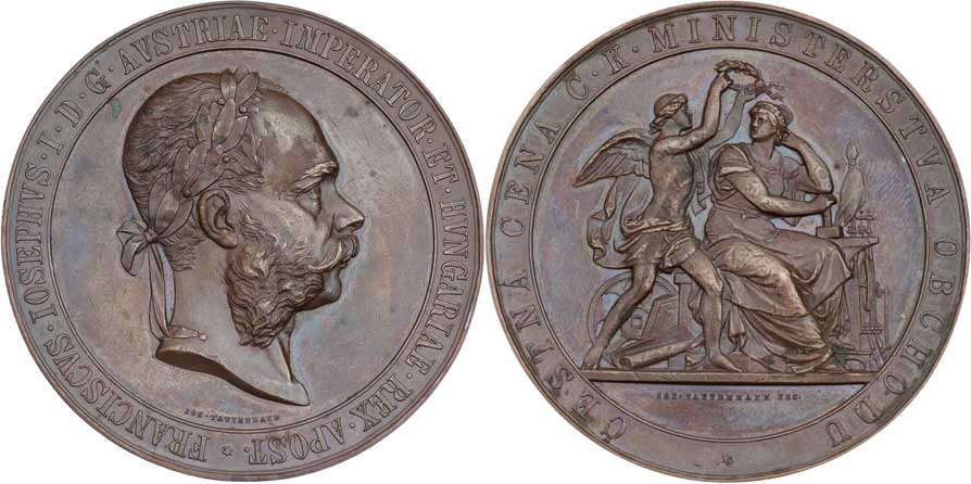 Tautenhayn - Čestná cena ministerstva obchodu 1891 - hlava Fr.Josefa zprava, opis / alegorie a opis, bez nápisu na hraně, bronz 57 mm, ŠFP.2b, rysky, pat.