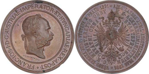 Tautenhayn - Státní cena ministerstva orby 1891 - hlava Fr.Josefa zprava, opis / císařský znak, trojitý opis, Sign., bronz 40 mm, 35.863g, ŠFP.3c, patina