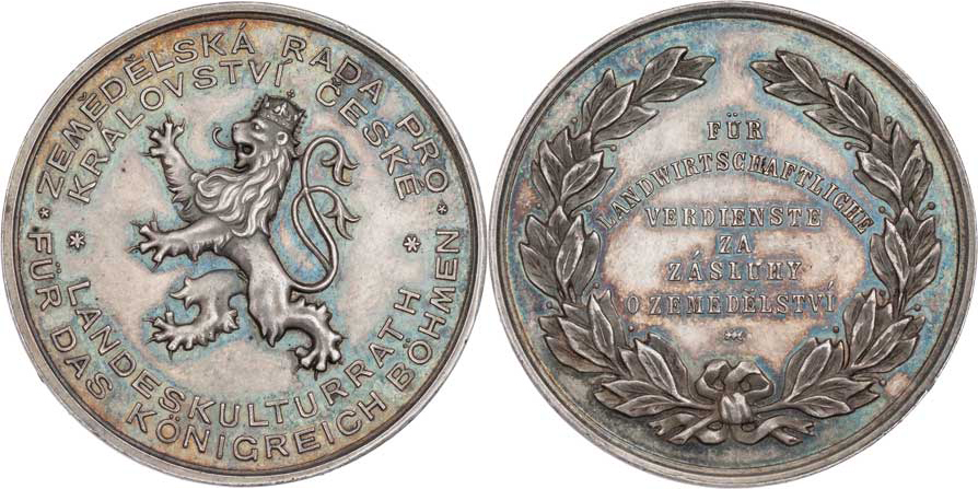 Kříž - Zemědělská rada pro Království české - český lev, dva opisy / česko-německý nápis ve věnci, Sign., Punc., Ag 42mm, 23.944g, jako ŠFP.6b (200ks), nep.hr.