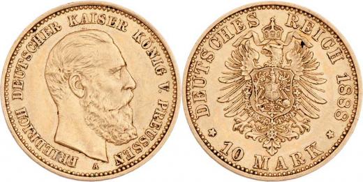10 Marka 1888 A, KM.514 (Au900), 3.968g, nep.hr., nep.rysky, pěkná patina, téměř
