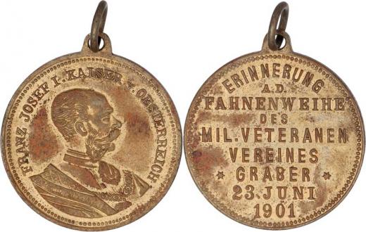 Gaber (Kravaře) 1901 - svěcení praporu 23.6., Nesign., mosaz 28 mm s původním raženým ouškem, Indra.str.42, pěkná patina